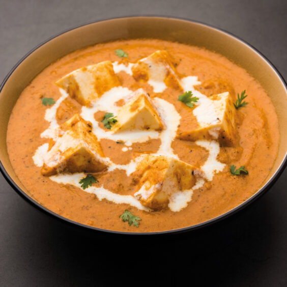 A sumptuous North Indian delicacy featuring tender cubes of paneer simmered in a luscious tomato-based gravy infused with butter, cream, & a medley of aromatic spices such as cumin, coriander, and fenugreek leaves.